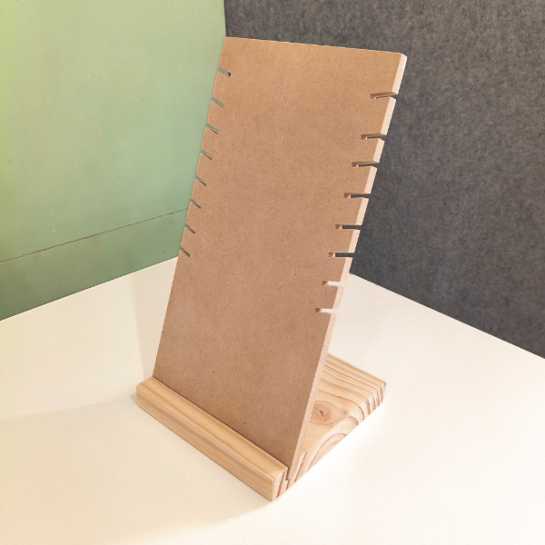 Este busto ranurado está pensado para exhibir collares de forma ordenada, visible y profesional, permitiendo que cada diseño tenga su espacio y se luzca sin enredos.