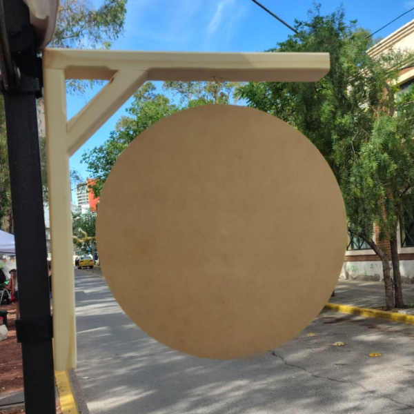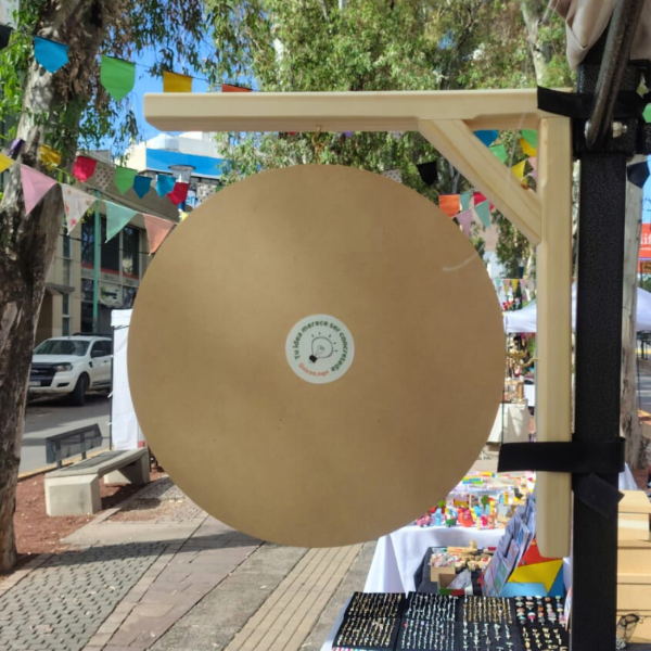 Este cartel de madera es ideal para destacar tu emprendimiento en ferias o eventos. Se cuelga fácilmente del caño del gazebo y podés personalizarlo con tu logo, nombre o diseño.