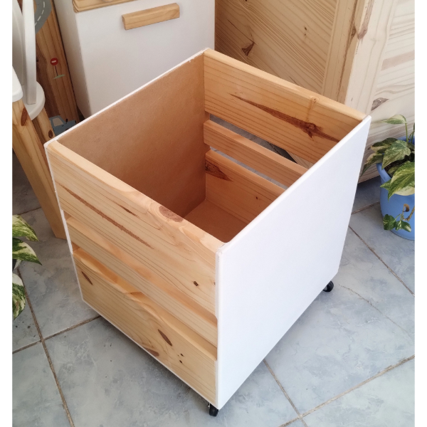 Fabricado en madera de pino barnizada y mdf pintado con hidroesmalte blanco, se limpia super fácil solo con un trapo húmedo.